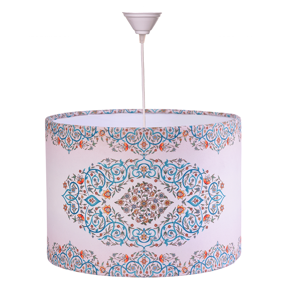 لوستر سقفی با طرحی زیبا با جنس کلاهک مخملی مناسب برای سالن های پذیرایی و اتاق خواب و آشپزخانه سن میباشد . جنس بدنه تمام پارچه به همراه طلق نسوز سفید و فلز برای استحکام آن میباشد . رنگ پارچه و فلز ثابت میماند . سرپیچ آن E27 بوده . محصول بدون لامپ میباشد