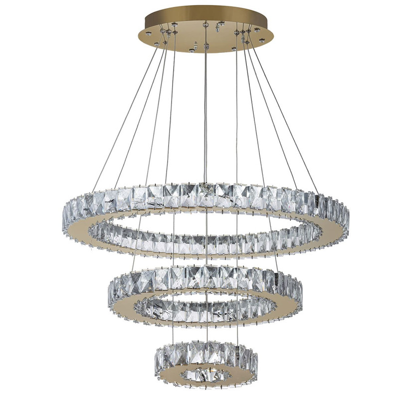 لوستر مدرن آویزی کهکشانی 3 حلقه سایز 15- 30 – 50 که شکل ظاهری بصورت کهکشانی یا طبقاتی قابل تنظیم است. این لوستر برای فضای 20 – 25 متر مربع مناسب است. دارای صفحه استیل گرد سایز 25 cm جهت اتصال به سقف می باشد. کنترل – فلز و ال ای دی SMD و کریستالها همه درجه 1 هستند. دارای ریموت هوشمند دیمر دار که قابلیت کنترل شدت نور و نوع نور را دارد. نور 3 حالته لوستر: مهتابی – آفتابی و حالت نچرال ( مخلوط مهتابی و آفتابی)
