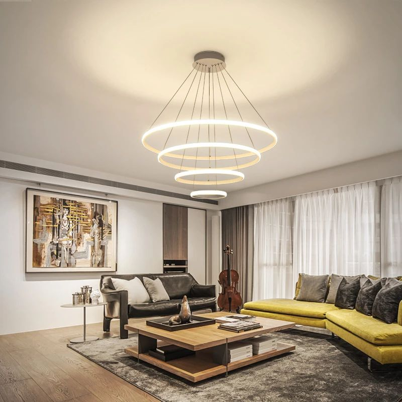 این مدل لوستر چهار حلقه نور به بیرون، با قطرهای 35-50-70-90 است که با بدنه سفید ارائه شده و در سه رنگ نور آفتابی و مهتابی و همزمان هردو (چند رنگ ) قابل انتخاب است.
