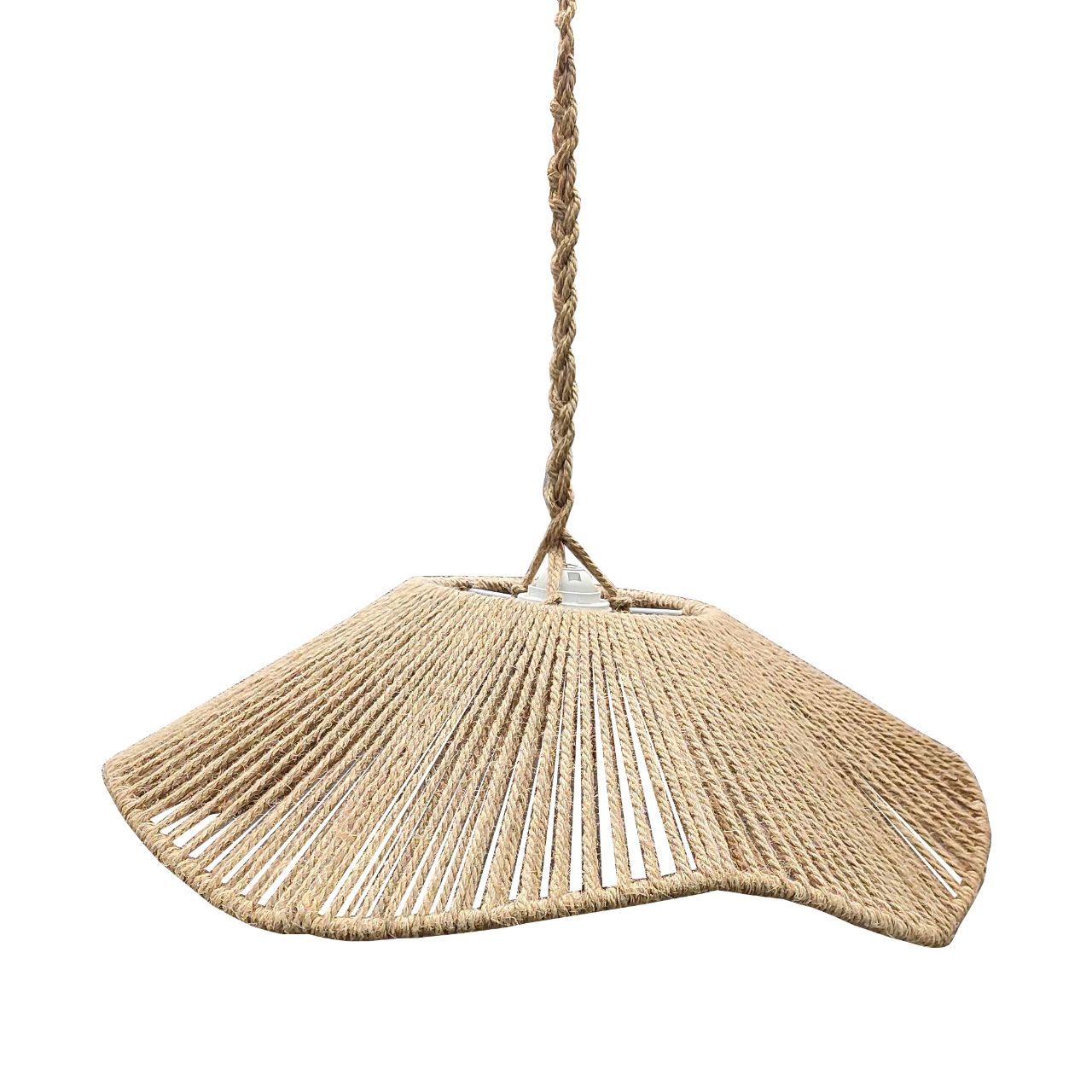 لوستر بافتنی تک آویز مدل دفرمه 60 میباشد . این لوستر بافته شده از نخ گونی میباشد و قابل شستشو نیز میباشد. سایز قطر پایین 63 سانتی متر و سایز دهنه بالا 20 سانتی متر میباشد.
