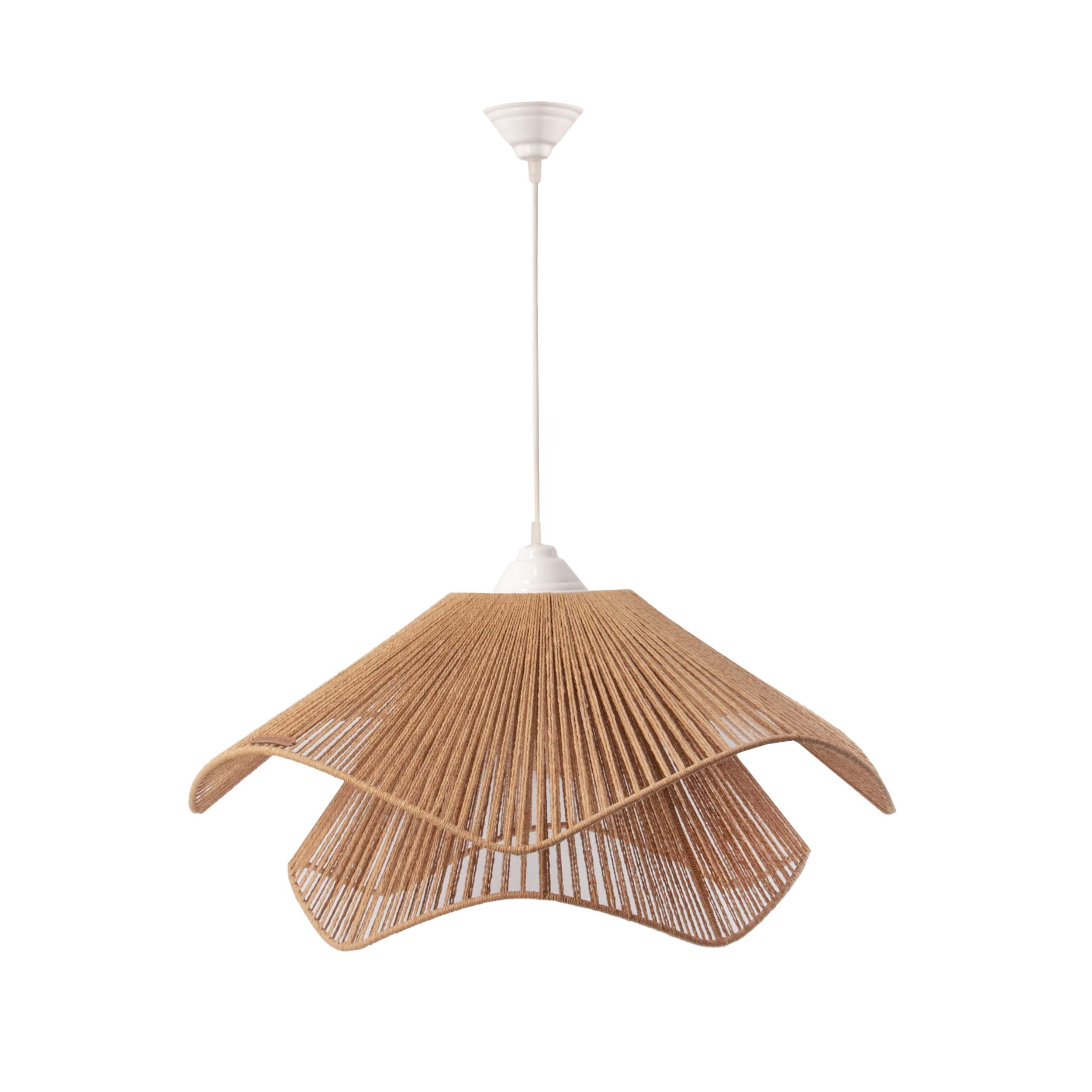این لوستر دارای بدنه ای بافته شده از حصیر رافیا می باشد که جلوه ای زیبا و طبیعی به آن بخشیده و با نصب در فضای مورد نظر حس گرما را به خوبی انتقال میدهد.