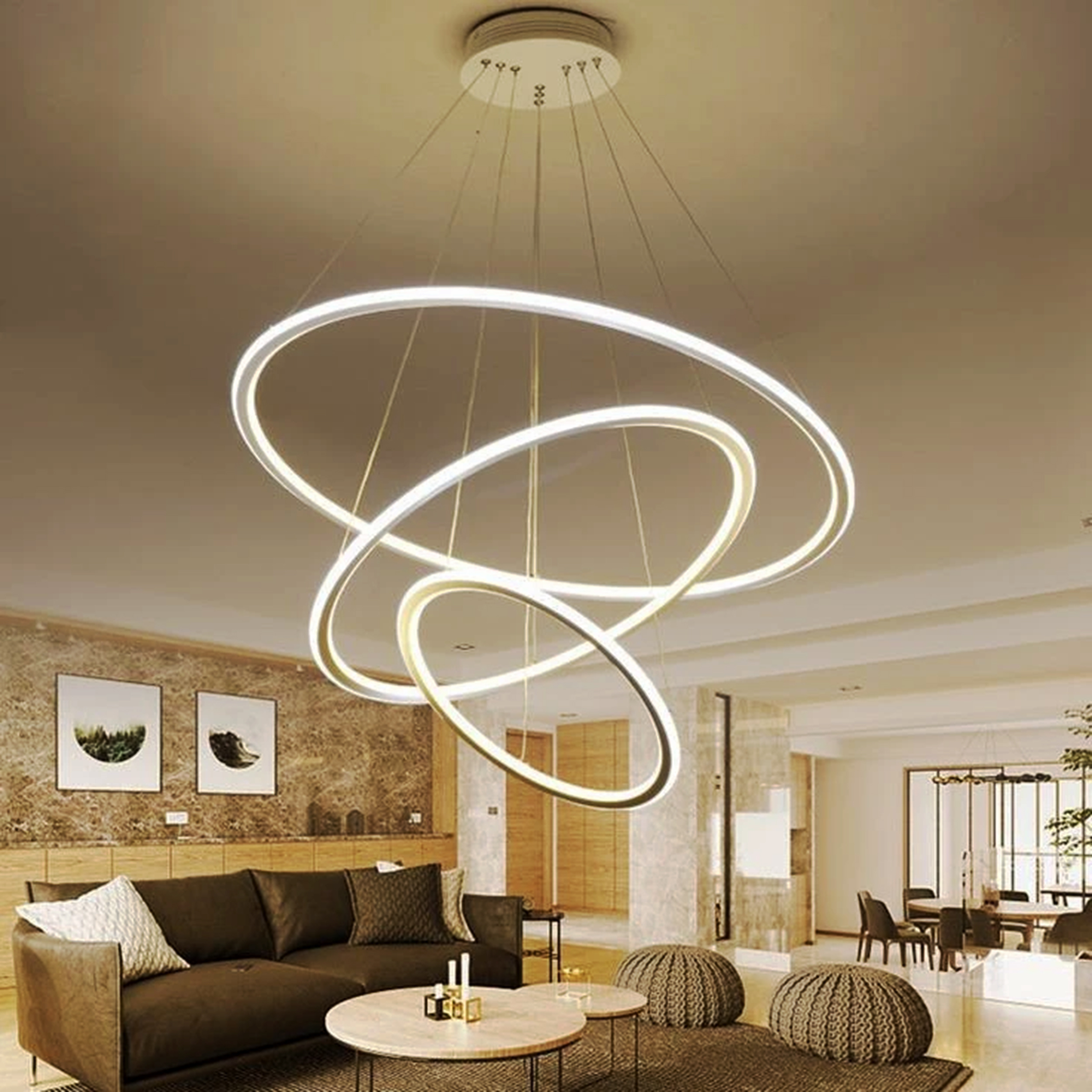 لوستر مدرن سه حلقه دایره دو طرف نور قطر های 70_50_30 دارای بدنه آلومینیومی و روکش نواری میباشد که برخلاف لوسترهای بازار از هر دو طرف نور دار و دو برابر smd داخل لوستر کار گذاشته شده است که پرتاب نور فوقالعاده دارد ارتفاع و چیدمان قابلیت تنظیم دارد و دارای سه حالت نور ، مهتابی ، آفتابی و نچرال میباشد که با ریموت کنترل قابلیت تغییر دارد و همچنین با ریموت کنترل شدت نور را میتوان تنظیم کرد دارای برنامه موبایل اندروید وIOS میباشد که میتوان جایگزین ریموت کرد یک لوستر فوق العاده شیک و مدرن و در عین حال ساده و سبک میباشد این لوستر در تمامی فضای های مسکونی ، اداری و تجاری قابل استفاده میباشد