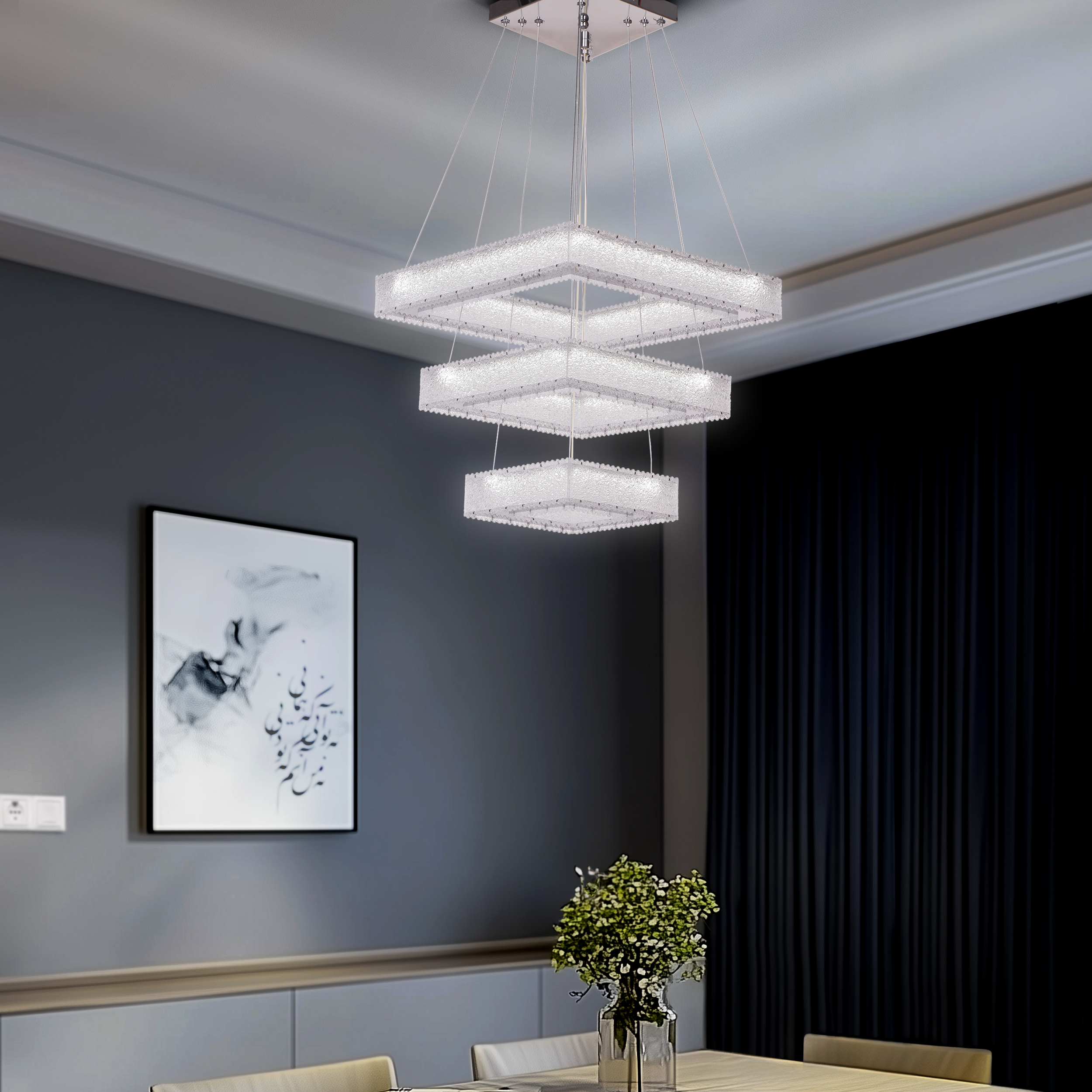 لوستر مدل مدرن سه حلقه با طراحی سه‌حلقه‌ای خود که هر کدام دارای ابعاد متفاوتی (۲۰، ۳۰ و ۴۰ سانتی‌متر) هستند، به‌طور هوشمندانه‌ای نور را در فضا پخش می‌کند و ترکیبی از زیبایی و کارایی را ارائه می‌دهد. جنس بدنه استیل نقره‌ای براق به همراه شیت کریستالی پلی استایرن مقاوم سرما و گرما با کیفیت بالا، دوام این محصول را تضمین می‌کند. این لوستر به دلیل طراحی مدرن خود، نه تنها به عنوان یک منبع نور، بلکه به عنوان یک عنصر تزئینی در فضا عمل می‌کند. با توجه به قابلیت تنظیم ارتفاع تا ۸۰ سانتی‌متر، این لوستر به‌راحتی با انواع فضاها و ارتفاعات سقف سازگار می‌شود.