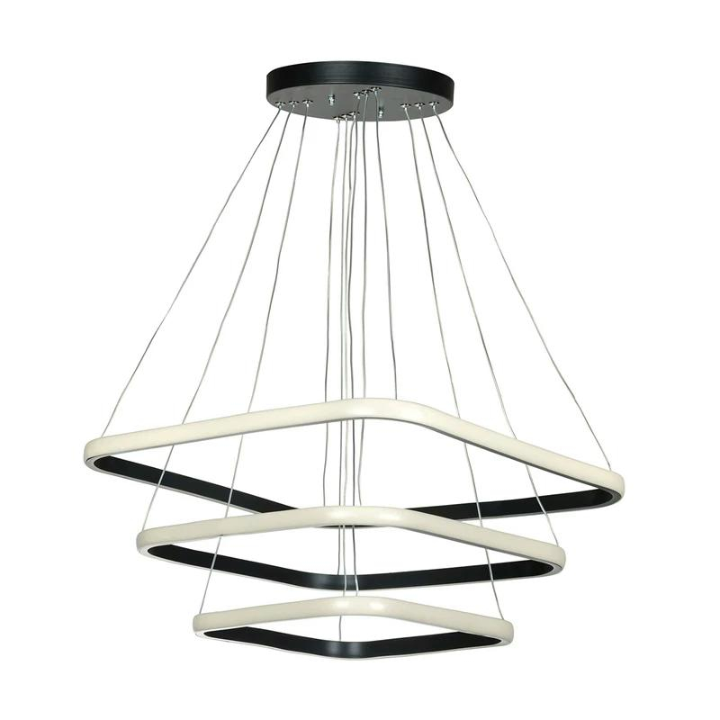 لوستر مدل مدرن کد MNB345، لوستر مربع سه حلقه به ابعاد 30 40 50 سانتیمتر لوستری با طراحی مدرن و زیبا، جنس بدنه این لوستر از آلومینیوم و پوشش رنگ بدنه این لوستر از رنگ استاتیک و کوره ای بوده که در کنار زیبایی بسیار مقاوم میباشد،