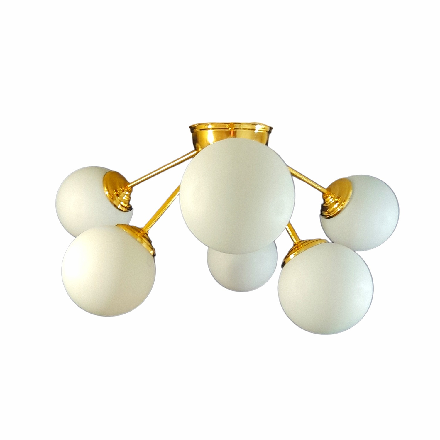 لوستر مولکولی فوق تحت عنوان کد (M121/6) شناخته میشود.لوستر مدرن یکی از بهترین پر طرفدارترین انواع لوستر در صنعت دکوراسیون داخلی است که در چند سال اخیر با استقبال بسیار زیاد مواجه شده است. این گروه از لوستر بخاطر تلفیق زیبایی،نورپردازی مناسب و سادگی وهمچنین قیمت مناسب توانسته اند در محیط های مسکونی،اداری و تجاری کاربرد گسترده ای داشته باشند . این لوستر با استفاده از حباب های سفید مات سایز 14 سانتی متر ،زیبایی منحصر بفردی را به محصول می بخشد. همچنین بدنه این محصول از فلز آهن با آبکاری بسیار باکیفیت و مقاوم میباشد در این محصول از سرپیچ بزرگ (E27) استفاده شده است. این لوستر داری ارتفاع کمی است وبسیار مناسب برای سقف های کوتاه می باشد .این محصول بصورت دمنتاژ ارسال میشود و نحوه نصب بسیار آسانی دارد در هنگام نصب لوستر توجه داشته باشید که شاخه ها طبق تصویر تنظیم کرده و سپس مهره ها را کاملا سفت کرده تا دچار افتادگی شاخه نشود.