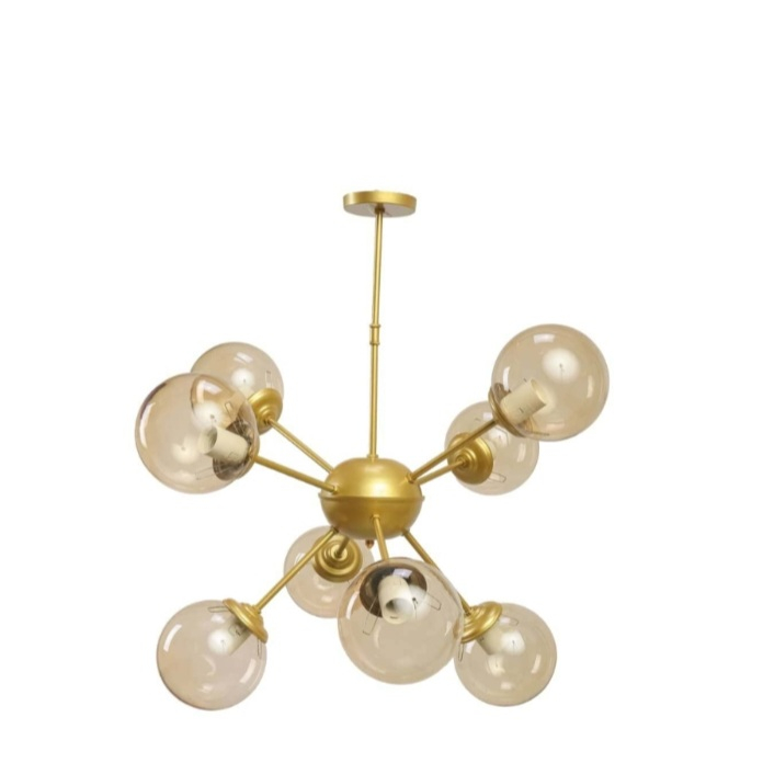 لوستر مولکولی فوق تحت عنوان کد M123/8 شناخته میشود.لوستر مدرن یکی از بهترین پر طرفدارترین انواع لوستر در صنعت دکوراسیون داخلی است که در چند سال اخیر با استقبال بسیار زیاد مواجه شده است. این گروه از لوستر بخاطر تلفیق زیبایی،نورپردازی مناسب و سادگی وهمچنین قیمت مناسب توانسته اند در محیط های مسکونی،اداری و تجاری کاربرد گسترده ای داشته باشند . این لوستر با استفاده از حباب های شامپاینی ،زیبایی منحصر بفردی را به محصول می بخشد. همچنین بدنه این محصول از فلز آهن با رنگ الکترواستاتیک (رنگ کوره ای )بسیار باکیفیت و مقاوم میباشد که در دورنگ طلایی ونقره ای عرضه میگردد در این محصول از سرپیچ بزرگ (E27) استفاده شده است.این محصول دارای بسته بندی مناسبی است لیکن برای اینکه در جابجایی دوچار صدمه نگردد بصورت دمنتاژ ارسال میشود و نحوه نصب بسیار آسانی دارد در هنگام نصب لوستر توجه داشته باشید که شاخه ها طبق تصویر تنظیم کرده و سپس مهره ها را کاملا سفت کرده.