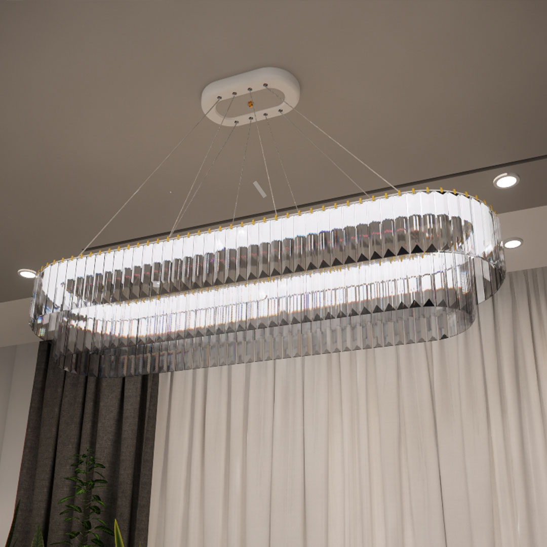 لوستر نورکیا مدل لاینر کاردی مخصوص بالای میز ناهار خوری، راهرو ها و سالن طراحی شده است. این لوستر دارای ست کامل شامل لوستر دیواری، لوستر دو حلقه ای کاردی و تک حلقه ای کاردی برای سالن، آشپزخانه و اتاق خواب است. با جستجو در دیجیکالا می توانید این مدل ها را پیدا کنید. در این لوستر می توانید علاوه بر ریموت کنترل، از طریق گوشی هوشمند اندروید و iOS نیز رنگ نور یا شدت نور را تغییر دهید. با توجه به تکنولوژی ال ای دی سه رنگ، این لوستر می تواند سالن را با رنگ های مهتابی ، آفتابی و نور طبیعی (مخلوط مهتابی و آفتابی) روشن کند. همچنین با خاموش و روشن کردن هم رنگ نور و هم شدت نور تغییر می کند. این لوستر در نور سفید 5000 لومن، نور آفتابی 5000 لومن و نور طبیعی 10000 لومن نور تولید می کند. نور این لوستر کاملا مناسب برای میز بالای ناهار خوری است همچنین می تواند اتاق خواب بزرگ و سالن را کاملا درخشان کند. ریموت کنترل این محصول حالت های مختلف نور را در اختیار شما قرار می دهد. حالت شب خواب یکی از این حالت هاست که با فشار یک دکمه این لوستر به کم نور ترین حالت می رود که در این حالت تنها 5 درصد از توان لوستر استفاده می شود. با بهره گیری از سیم های جمع شونده می توانید ارتفاع این لوستر را از 35 سانت تا حدود 100 سانت تغییر دهید. با خرید این این لوستر نیازی به لامپ ندارید. داخل حلقه های آن، مجموعا 108 وات ال ای دی با شاخص مصرف انرژی A++ نصب شده است. لامپ های ال ای دی بسیار بهینه تر از لامپهای کممصرف و رشتهای هستند. این لوستر با وجود اینکه 108 وات توان مصرفی دارد اما می تواند نوری به اندازه یک لامپ کم مصرف 240 وات تولید کند. قسمت بالای حلقه ها از الومینیوم ساخته شده است تا حرارت ال ای دی ها دفع شود. بخاطر همین سیستم خنک کاری، طول عمر مفید ال ای دی های این لوستر 25000 ساعت یا حدود 8 سال است. در این لوستر از کریستال های درجه یک وارداتی استفاده شده که دارای بهترین شفافیت است. کریستال های این لوستر در 4 رنگ قابل سفارش است. شفاف (بی رنگ) ،شامپاینی (بژ)، دودی (تیره) ، و یخی (سفید مات). دقت کنید که رنگ های کریستال روی بازدهی نور تاثیر زیادی دارد. کریستال های دودی، شامپاینی و یخی باعث کاهش نور می شوند اما کریستال شفاف نور را کاهش نمی دهد.