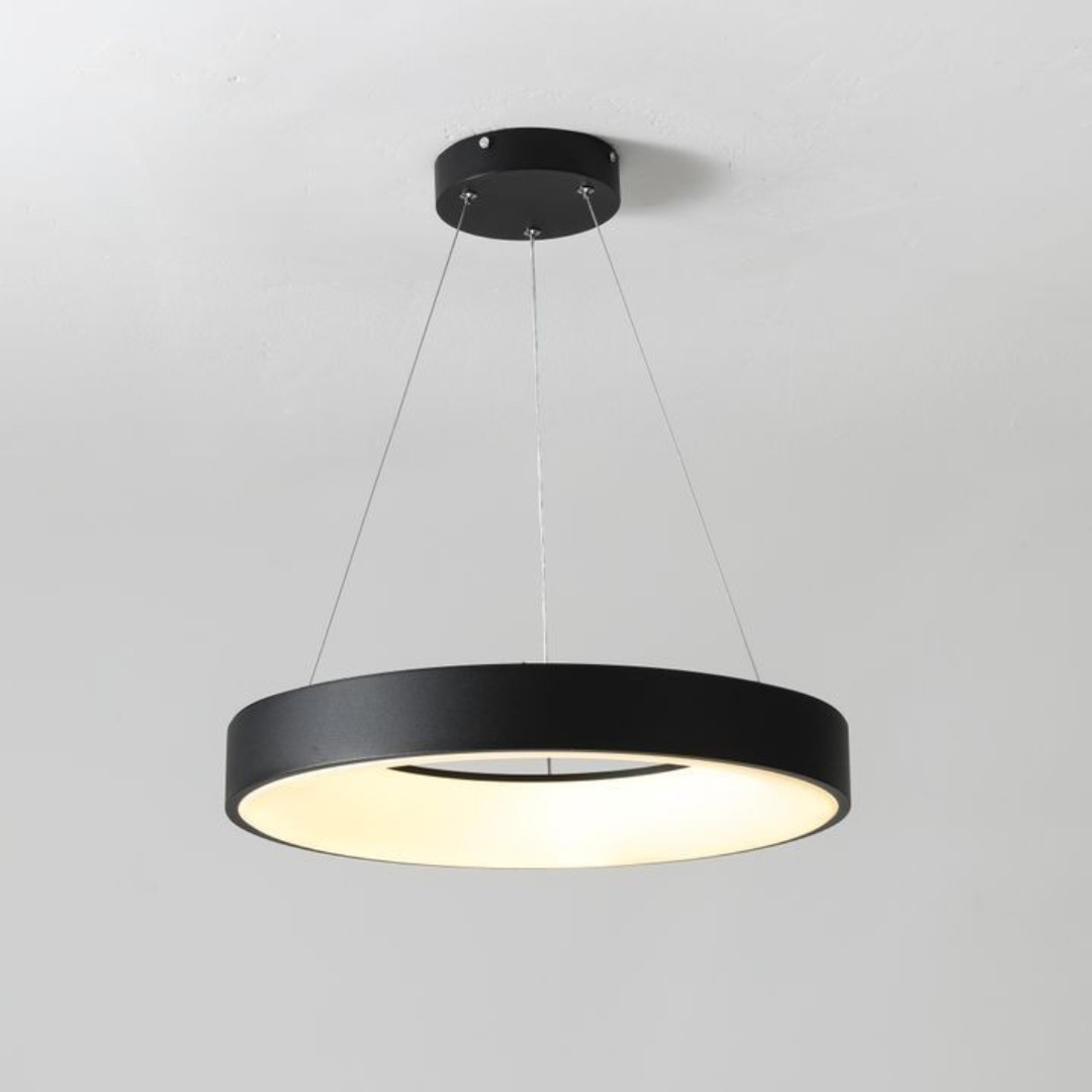 آویز مدرن دایره شکل با قطر 60 سانتیمتر و رنگ بدنه مشکی مات استاتیک، سفید و طوسی و نور (چند رنگ)