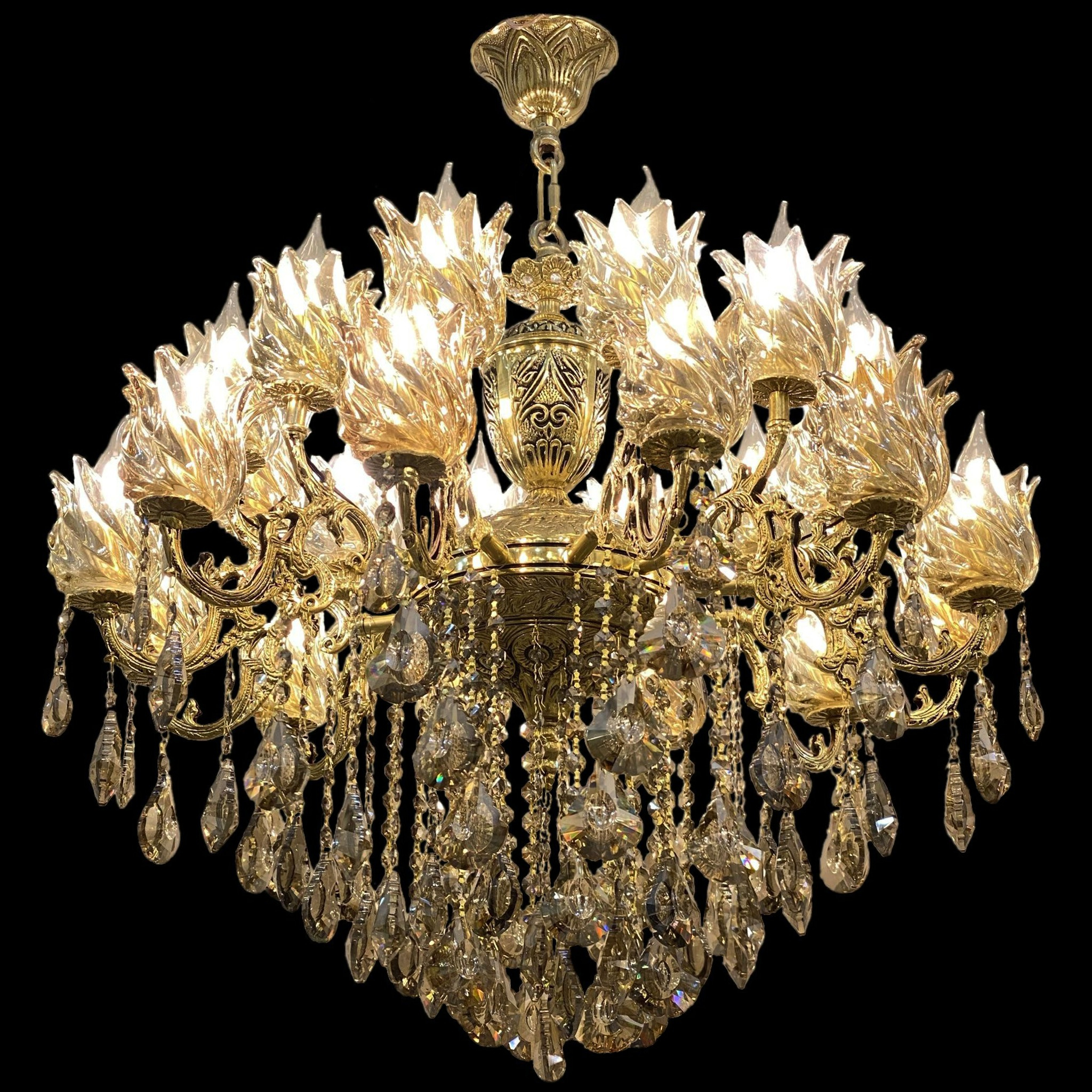 لوستر 24 شعله کد 9966 یک محصول با ویژگیهای فنی و طراحی بینظیر است. این لوستر دارای ابعاد 70x70x75 سانتیمتر و ارتفاع 75 سانتیمتر است. وزن 21000 گرمی در ین لوستر، منجر به ایجاد یک قطعه باکیفیت و سنگین شده است که به واسطه جنس برنج، در طول زمان رنگ و حالت خود را حفظ میکند.