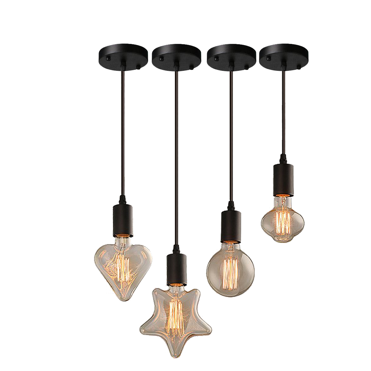 این محصول شامل مجموعه ای 4 عددی از چراغ آویز سقفی است که در یک بسته با قیمتی بسیار مناسب تر از خرید تک عددی و بدون لامپ عرضه می شود. جنس این محصول دارای پایه فلزی و جا لامپی کلاسیک فلزی و آویز از جنس کابل با سایز 2*0.5 است.ارتفاع هر آویز 100 سانتیمتر است که به دلخواه خودتان می توانید با برش کابل کوتاهش کنید و یا با گره زدن های متفاوت و هنری کابل آن را کوتاه و دیزاین کنید.قطر کفی محصول 10سانت است. هر عدد از این محصول بسیار سبک بوده و روی سقف کاذب هم به آسانی نصب می شود.رنگ کفی مشکی با کیفیت کوره ای است که دوام بالایی دارد و با کشیدن ناخن و بنزین رنگش نمی رود.برای تمیز کردن براحتی می توانید با شیشه پاک کن یا بنزین آن را پاک کنید.نصب ان بسیار راحت است و نیاز به اطلاعات خاصی نیست و براحتی می توانید نصب کنید.برای عمر بیشتر این محصول از لامپ های LED یا کم مصرف استفاده کنید.از این محصول در دیزاین های خاص و شیک و ساده می توانید بهره ببرید و با چیدمان تعداد دلخواه در سقف،جلوه خاص و مینیمالیسم ایجاد کنید. در انتها مجددا ذکر می شود که این محصول بدون لامپ ارسال می شود و لامپهایی که در عکس اول مشاهده می کنید لامپ ادیسونی موجود در بازار است و حباب نیست که تنوع و اشکال زیادی دارد که باسلیقه خودتان می توانید تهیه کنید .سرپیچ لوستر از نوع E27 و به اصطلاح سرپیچ بزرگ است که همه نوع لامپی را از جمله کم مصرف و led و ادیسونی و..میتوانید روی ان نصب کنید