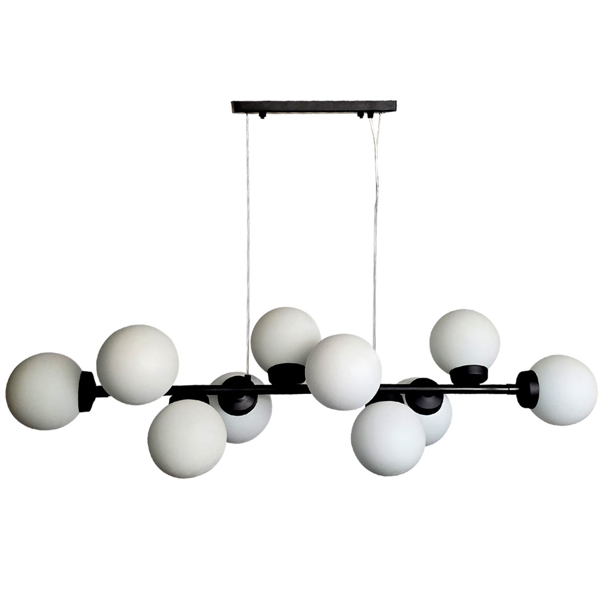 چراغ آویز مدل KNT10 از سری چراغ های آویز خطی مولکولی مدرن است که دارای بدنه اصلی آهنی با پوشش رنگ استاتیک کوره ای و 10 حباب با قطر های 14 سانتی متر با جنس شیشه ای است.برای 10 شعله این چراغ آویز زیبا از سرپیچ های معمولی یا E27 بهره گرفته شده که امکان استفاده از لامپ های LED تا 12 وات را فراهم کرده است. ارتفاع این آویز خطی زیبا به وسیله کابل های تنظیم ارتفاع قابل تنظیم تا حداکثر 1 متر از سقف و حداقل ترین حالت نزدیک به سقف قابل تنظیم است که برای محیط هایی با ارتفاع کم هم کاملا قابل استفاده است. از این آویز زیبا در فضاهای مستطیل شکل تا نهایت 30 متر و بالای میز های نهار خوری، بالای کانتر و جزیره آشپزخانه ها و هر فضای داخلی دیگر می توان استفاده نمود.