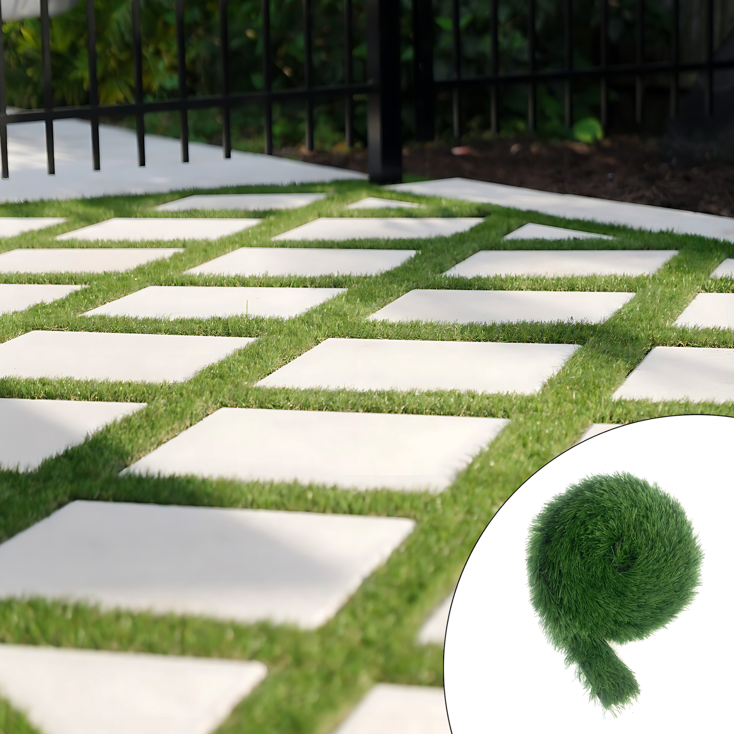 این چمن مصنوعی به صورت نواری می باشد طول آن 5 متر و عرض آن 5 سانتی متر می باشد. ارتفاع این چمن 25 میل می باشد و برای استفاده در بین سنگ های ساختمان و حیات و … بکار می رود.