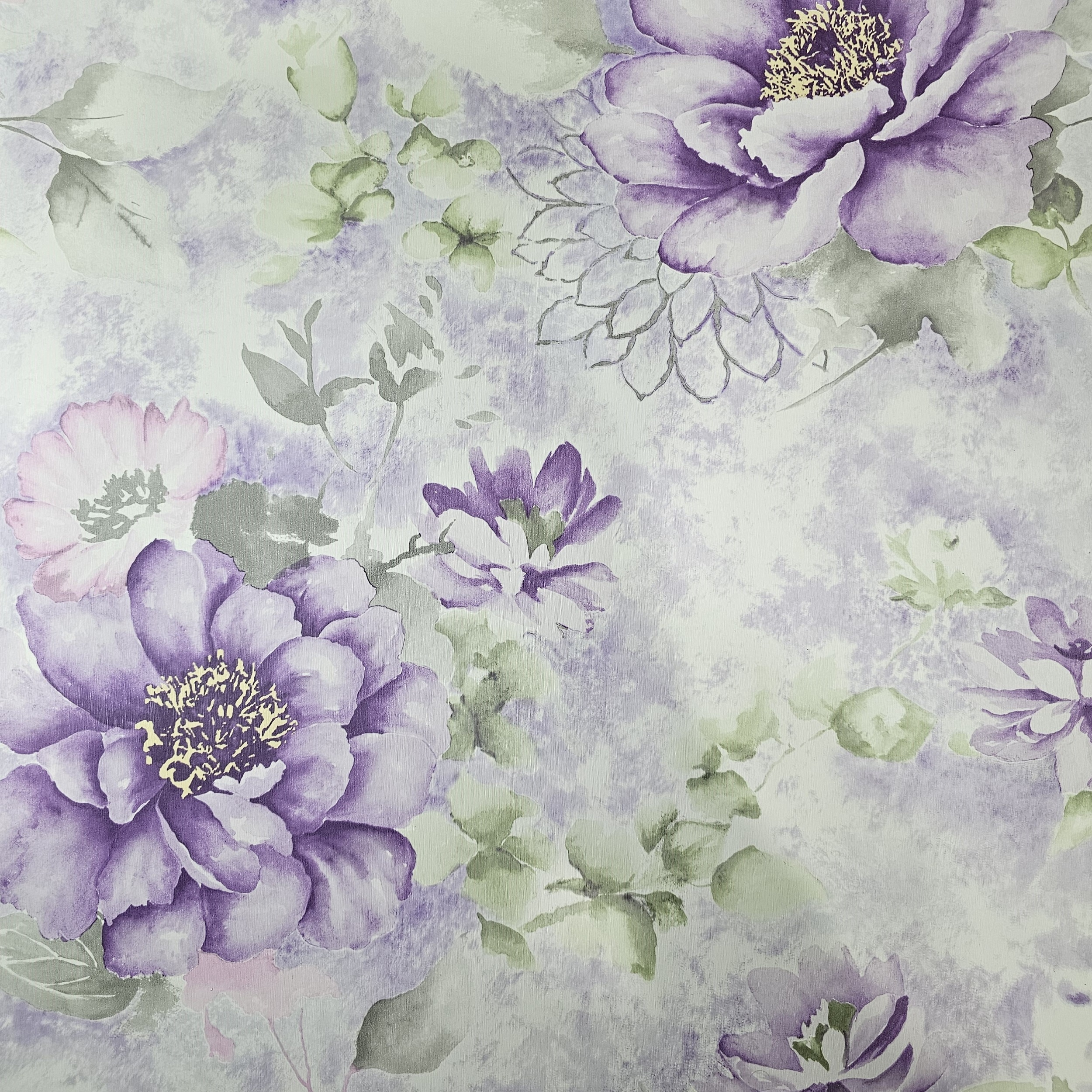پس زمینه سفید و مایل یاسی روشن دارد و با گل های یاسی و صورتی و بنفش که زیبا بخشیده است.کاملا قابل شستشو است و کیفیت نصب خوبی دارد.
